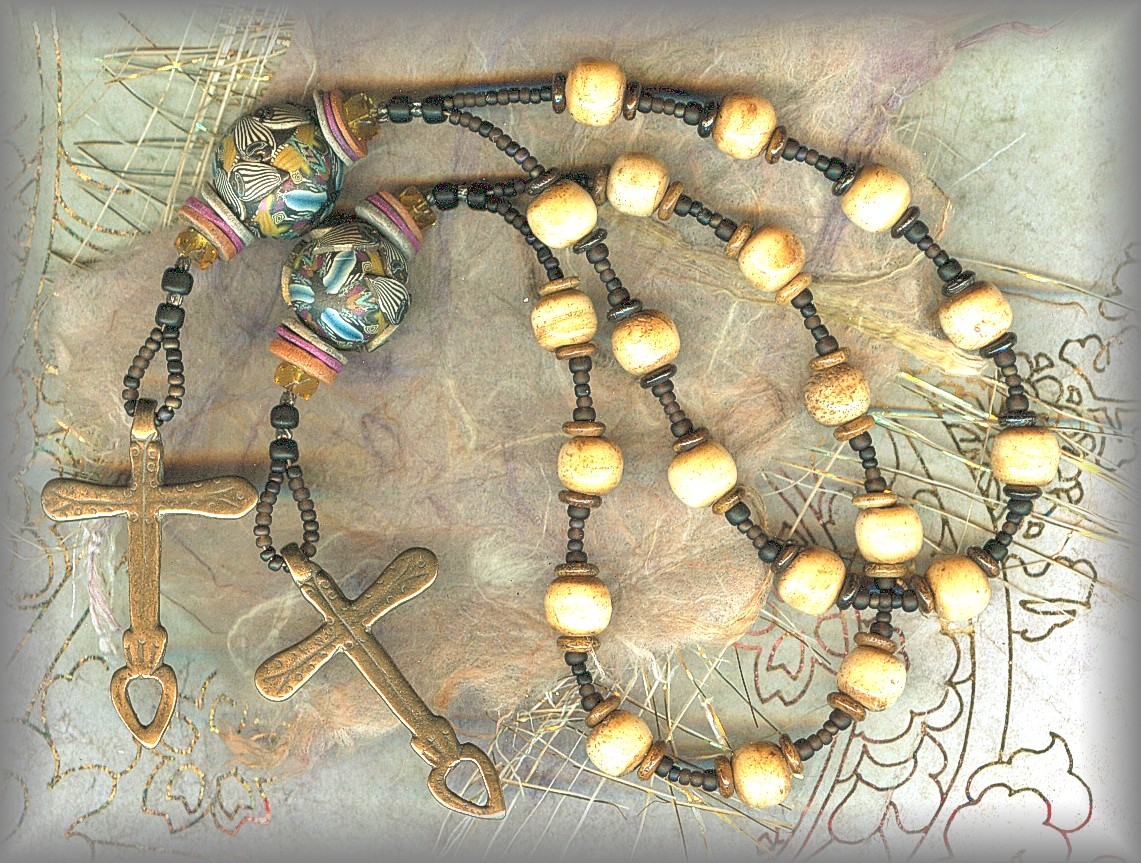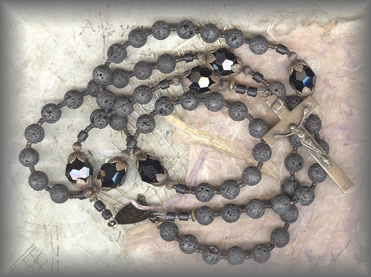 “HOPE IN THEE” ROSARY – Natural Lava & Lampwork