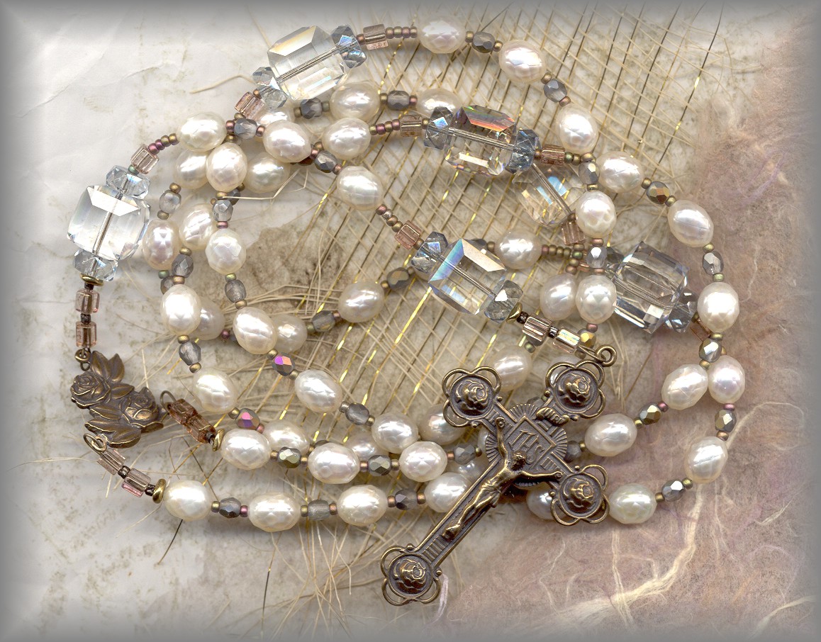 PRICE of WISDOM ROSARY- White Faceted Pearls & Austrian Crystal - (27 in.) - RST.2415