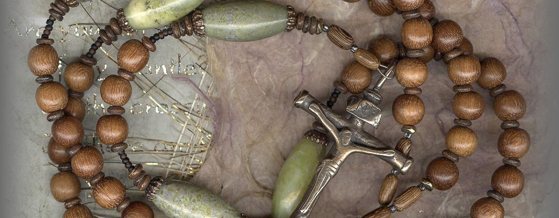 CHRIST BE WITH ME II: AVE BEADS: 8mm Fine-grained wood from the Pacific Rim. PATER BEADS: Deep, rich green Connemara Marble. The finest we have seen in Ireland for a very long time. Very very hard to replace this high grade Connemara. Hand picked and purchased in Galway Ireland) CRUCIFIX: GALWAY/CRUCIFIX – Ireland, late 1700s (2.5 in.) … Continue reading “CHRIST BE WITH ME” ROSARY- Connemara Marble / Wood – (8 mm – 25.5 in) – RET.21410