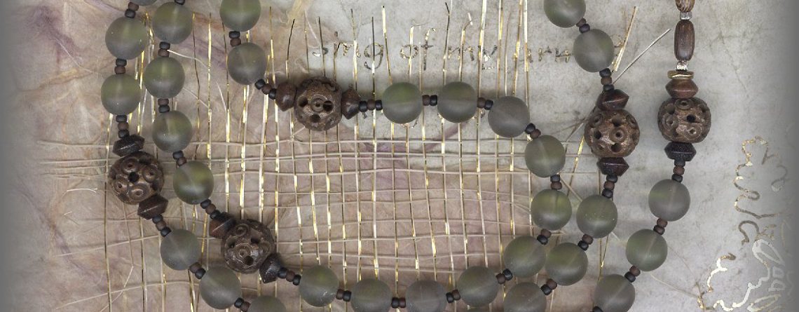 “NEVER HUNGER” ROSARY AVES BEADS: 8m Antique beads of highest Czechoslovakian quality in shades of pale green to grey depending on the light. PATER BEADS: 10m Dark brown carved horn capped with wood. CRUCIFIX: MEDIUM PLAIN CRUCIFIX-antique, Italy/1910’s CENTER: EUCHARIST WHEAT with CHALICE CENTER – Antique, origin/age unknown. (.75 in) This handsome rosary can accompany … Continue reading “NEVER HUNGER” ROSARY – First Communion – Moss Green & Horn – (19.5 in.) RFCB.22221