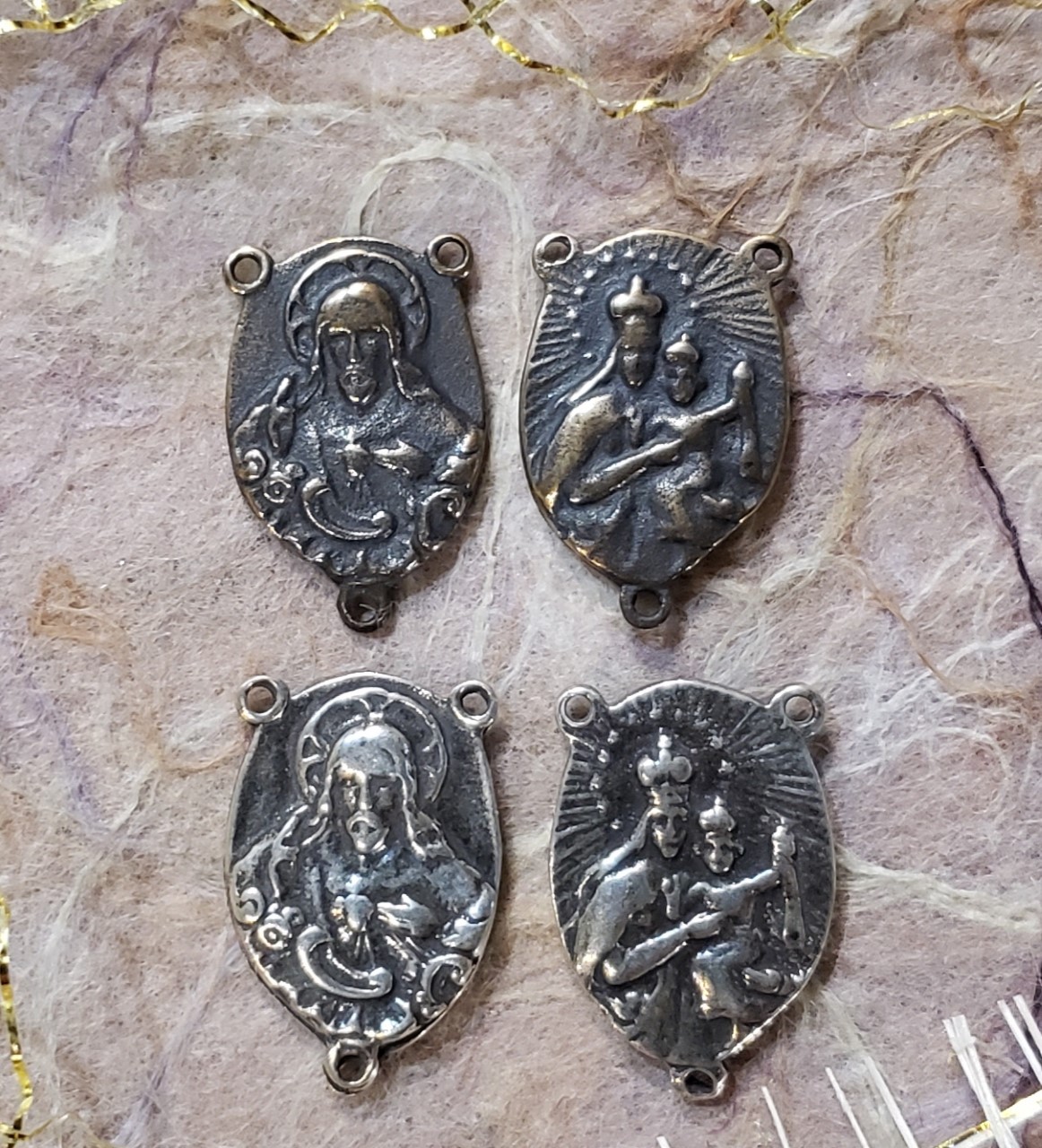 SACRED HEART / CARMEL 3 (FLOWERS) CENTER (scapular) - vintage (.50 in.) - ERC.249