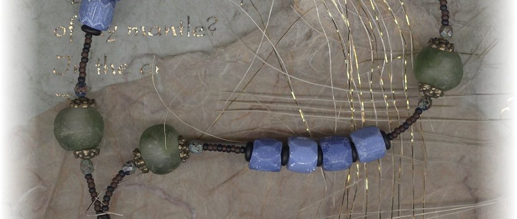 PERE MARQUETTE I – CHAPLET OF THE IMMACULATE CONCEPTION: BEADS: We have used Russian Blue Fur Trade beads from Venice that are over 200 years old on this corona or chaplet, along with old recycled glass trades from Africa. Neither would have been available for a chaplet for Pere Marquette but because of their historical value, … Continue reading IMMACULATE CONCEPTION CHAPLET – PERE MARQUETTE I – 3 sets of 4 – Blue Trade Beads – (9.5 in) – CICD.52131