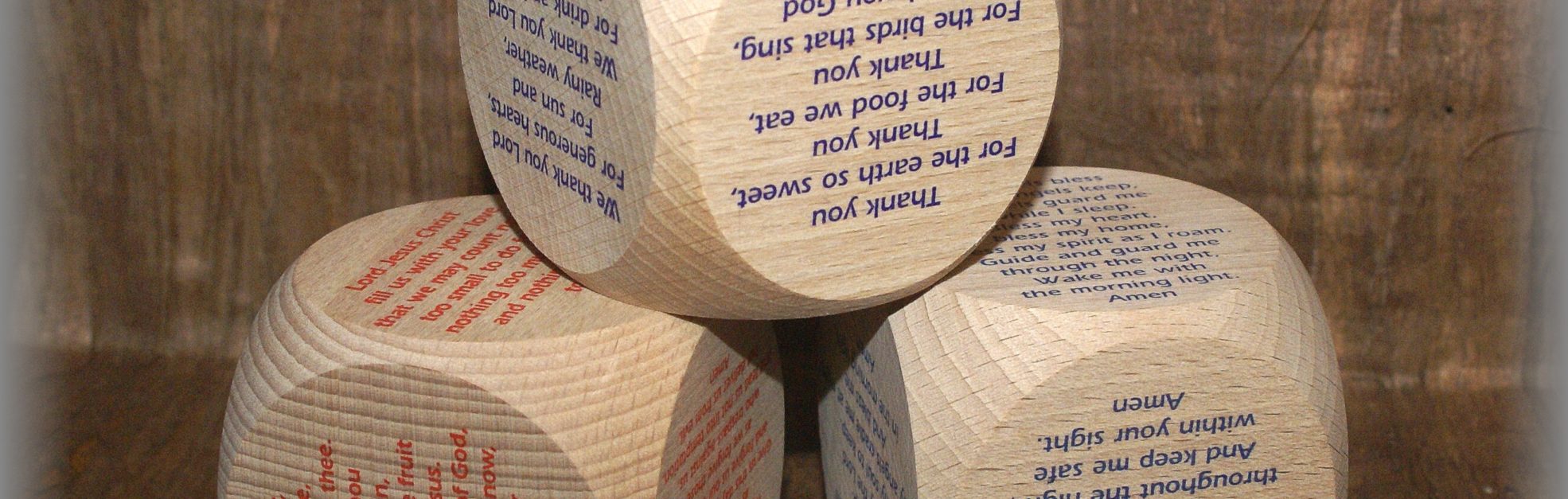 THREE PRAYER CUBES: (6) prayers on each cube, some familiar, some may be not! A wonderful way to bring children into those special prayer times. A wonderful way to start great habits of prayer. We enjoyed one parent tell us that one of her children, that could not read yet, still wanted to take her … Continue reading PRAYER CUBES – Mealtime, Bedtime, and Rosary Prayers – (2.25 in. cube) – pc4